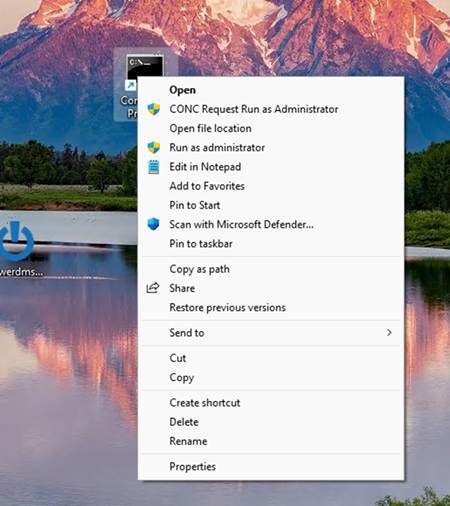 Right-clicking an item directly in the Start Menu will not show CONC Request Run as Administrator.