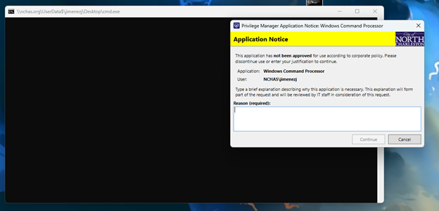 The CONC Request Run as Administrator option allows you to run/download approved applications with elevated permissions without needing a local administrator account. This improves security while still allowing you to complete your work.