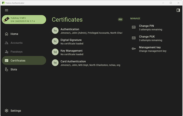 STEP 3 Import the Certificate into the YubiKey (Slot 9a)
