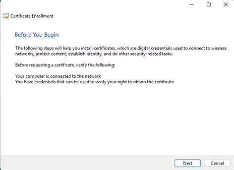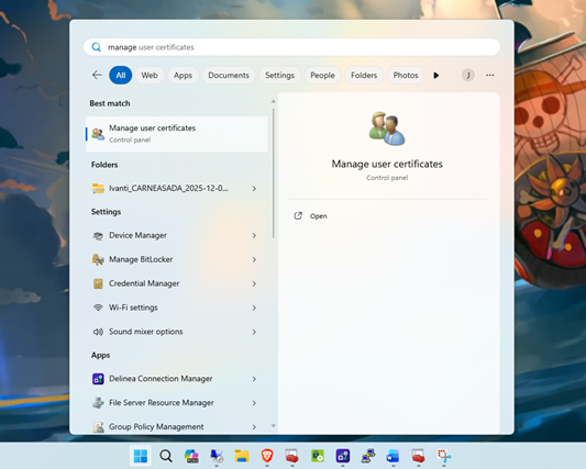 - On your keyboard hit the Windows key and type/select Open manage user certificates.